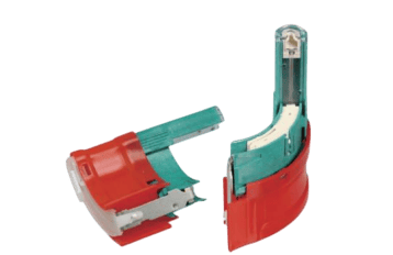Diseño más confiable con una fila externa de grapas 0,2 mm más baja que la interna, lo que mejora el flujo sanguíneo.